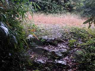 傘を差して登って行けそうな登城道があれば城内まで進んで行くことができたのであるが、この雨ではヤブ漕ぎはとてもできない。残念ながら登城はあきらめた。