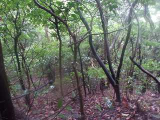 そこから直登していけばすぐに堀切のところまで到達できそうなのであるが、台風21号に伴う警報級の大雨が降っている最中であった。