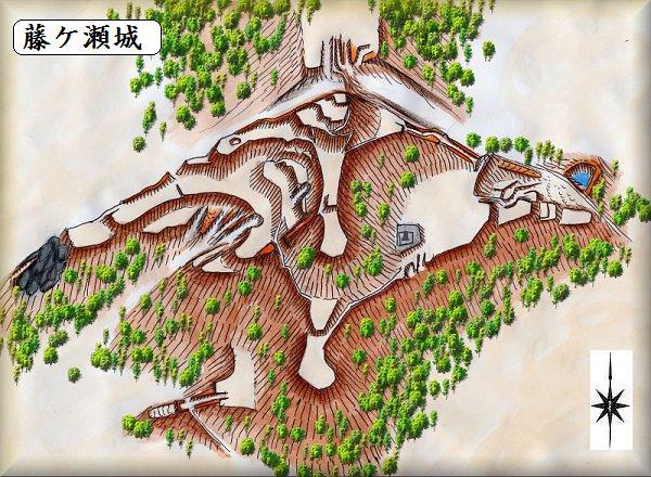 以下、山城攻城記より引用 概 要 斐伊川と下横田川が合流する位置に所在する。最高所は櫓台と考えられ、主郭は一段下がった郭とみられる。 尾根筋に深い堀切を築いて遮断している。主郭の西側は尾根の先端まで郭が築かれているが、いずれも北側を削り残して土塁とし、尾根筋に対する防御ラインを構成している。 主郭東方の中腹に築かれている郭は「馬乗馬場」と伝えられ、整地以前は多少の起伏があったものと伝えられる。 三沢氏は三沢城から藤ケ瀬城に居城を移したとされるが、櫓台を中心とした防御ラインの存在等から、毛利軍による改修強化の可能性もある。 島根県教育委員会『島根県中近世城館跡分布調査報告書』より引用 家系図 月山富田城の戦いで吉川氏らと共に尼子氏に寝返り、大内軍敗退の一因を作った。しかし三沢氏の独立性は高く、尼子氏の軍役を拒否して尼子氏との戦いに及んだ場合もあった。こういった反抗的な態度を取ってきた三沢氏に対して尼子晴久は横田荘の三沢氏領地や砂鉄産地・たたら製鉄場を取り上げ直轄化するなど、経久に比べて強硬的な姿勢で三沢氏と統治している。 1561年(永禄4) 毛利元就が出雲へ侵攻すると赤穴氏や三刀屋氏と共に三沢為清も毛利に降伏し、その後は毛利軍の主力として活躍した |