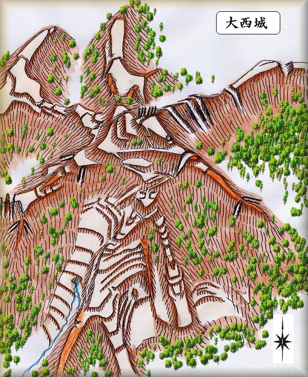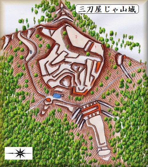 *広島のAさんからの依頼で、Aさんからいただいた図面(『島根県中近世城館跡分布調査報告書』)をもとに作成した鳥瞰図。この城にはまだ訪れていない。