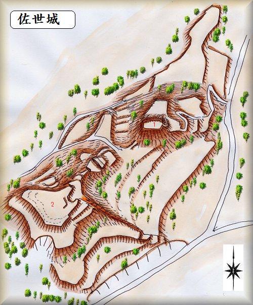 以下、山城攻城記より引用 概 要 主郭は現在公園となっているとと考えられ普請は十分である。2は佐世城の方向に普請がおこなわれているが、反対側は殆ど行われていない。そのため佐世城を攻める陣城の可能性がある。尼子氏の重臣、佐世氏の居城と伝わる。 島根県教育委員会『島根県中近世城館跡分布調査報告書』より引用 “金剛山佐世城跡 佐世城は正中3年(1326)佐世七郎左衛門清信が築城して以来、9代佐世伊豆守正勝まで276年にわたる居城であった。 初代清信は、湯頼清の五男・清信で、東忌部地頭から佐世の庄を領し、佐世七郎左衛門清信と名を改め、佐世氏の祖となった。 以来8代佐世伊豆守清宗まで尼子氏の家老衆として、12万石を領していたが、永禄8年(1565)より毛利氏に属し、防州山口に移住。 その後数々の軍功により、文禄3年(1594)再び佐世城主に迎えられた。佐世氏は、代々文武共に優れ、特に書画、詩歌の遺品が多い。また敬神崇仏の念も厚く、神社、仏閣を造営するなど、大きな業績を残した。 正勝公には嗣子がなく、慶長6年(1601)逝去と同時に、甥に当たる防州山口の佐世丹羽守元量が後職に任じられたため、佐世家は断絶した。 昭和49年4月7日 大東町教育委員会 佐世城址城山公園整備委員会 看板より 歴史 1326年 佐世清信によって築城 1540年 佐世清宗は尼子軍として吉田郡山城を攻める 1560年 尼子晴久が大森銀山山吹城を攻めるとき参陣する 1563年 毛利軍が尼子の拠点である白鹿城を攻撃した時には尼子倫久を総大将に救援に赴いたが敗れている 1565年 毛利軍が富田城を攻撃した時は尼子倫久の麾下に属して菅谷口をかため、小早川隆景の進撃を食い止めたばかりでなく、これを破って敵を後退させている その後毛利方に降伏する 1592年 朝鮮出兵時には佐世正勝も奮闘する 1594年 佐世の本貫地である佐世の地を加増される 1600年 佐世元嘉は関ケ原の戦いの時には広島城を守る 1601年 佐世正勝死去 ここに佐世の地における佐世氏は途絶える(家督は元嘉に継がれているので萩で存続することとになる) |