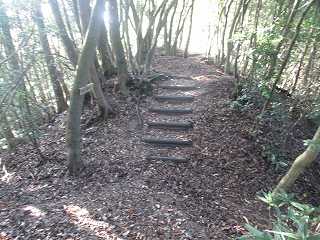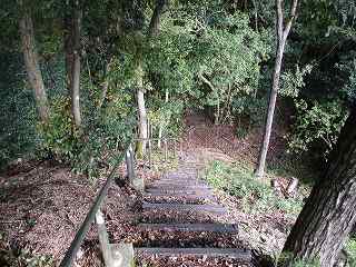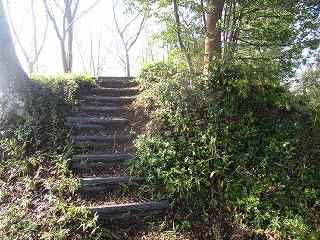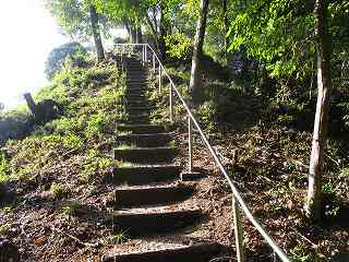 階段を登って行ったところが2郭、その先に1郭の城塁が見えている。