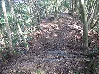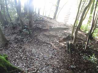 4郭から西側には地形なりに段々の郭が3つほど造成されており、最後に堀切を入れて城域を分断している。