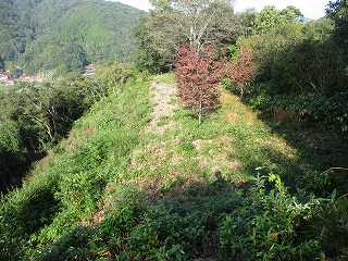 堀切はみな小規模なものだが、最後の堀だけは非常に規模が大きく、2郭の切岸は20m近い高さがある。