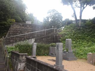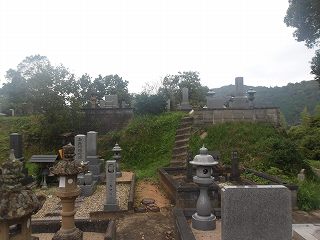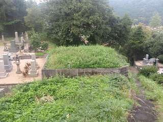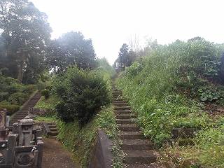 光明寺から背後に回っていくと、切岸のような地形が見えてくる。その先は段々の平場となっており、すべてが墓地として造成されている。