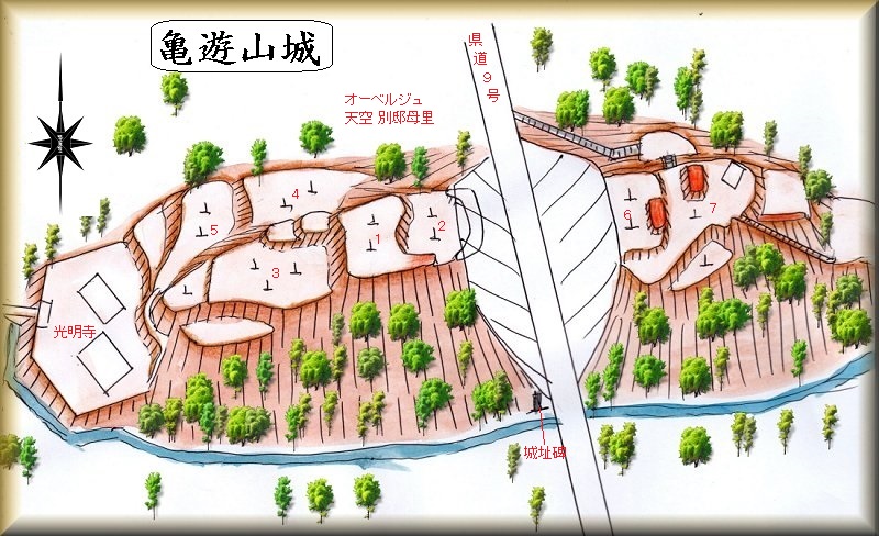 亀遊山城の場所。