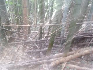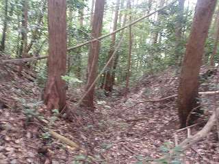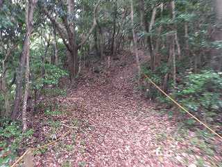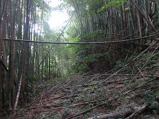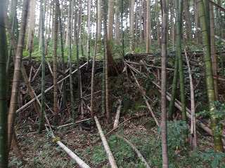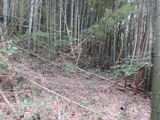 集会所の辺りから直登しても1郭まで行くことはできるのだが、切岸はけっこう鋭く、倒竹もかなりあり、かなり大変である。