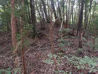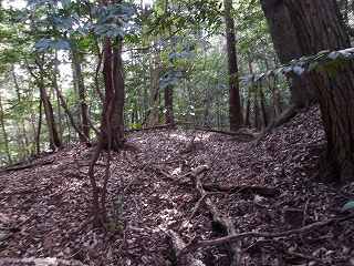 山稜部を中心に、数段の平場が造成されている。ただ、それほど技巧的な印象を受けるものはなく、かなり古いタイプの山城だったのではないかと感じられる。