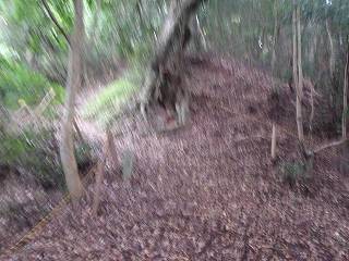 3郭はけっこう広く造成されていて、北西側に櫓台のような土壇が置かれている。この土壇は古墳なのかもしれない。3郭は、北側と西側に堀切を配しており、城の北端に当たる郭であったと考えられる。