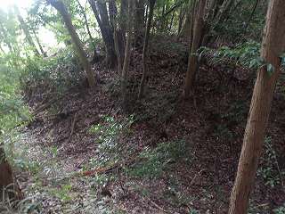 4郭から先は傾斜地形のままであり、それを進んで行った所にも堀があった。堀の先に土塁が構築されており、その下の平場が5郭である。