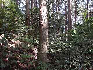 登城道とは言いながら、不明瞭な部分が多くて迷いやすく注意が必要である。幸い、赤いビニールテープがあちこちに貼られているので、それを頼りに進んで行くとよいであろう。