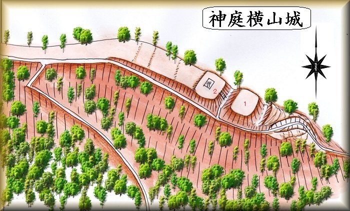 神庭横山城は尼子十砦の1つであり、城将は川井信濃守だったと言われている。