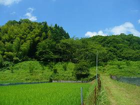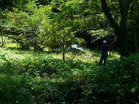山麓にある尼子屋敷跡。根古屋に当たる場所であろう。この名称が正しければ、戦国期の尼子氏の平素の居館が営まれていた所であったろうか。古図によっては山麓に立派な堀が描かれているのものあるが、山麓に堀があったとしたら、実際この辺りであったろう。 | 富田城の北方、新宮谷にある、新宮党の館跡。谷戸に囲まれた比高6mほどの低い台地である。 |