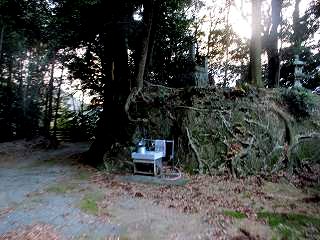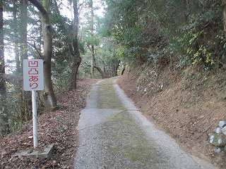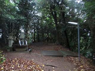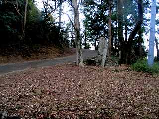 | 鳥居から先の舗装された参道。4カ所ほど凸凹があり、それに注意していれば運転は可能である。 | 3郭跡。 |