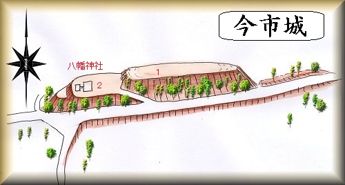 阿南市宝田町今市東ヤシキにある八幡神社のある微高地が今市城の跡である。