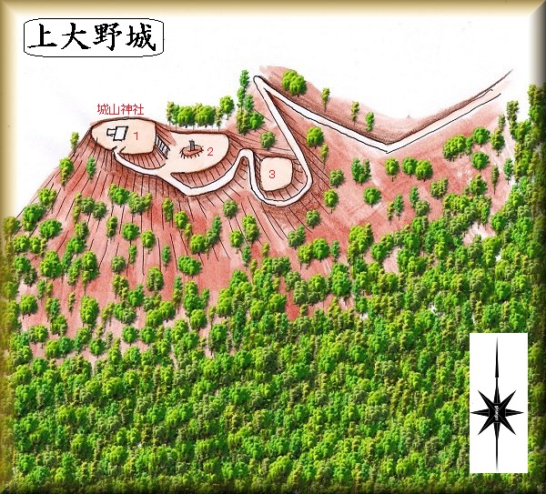 上大野城は規模も小さく、目立った構造も見られない。在地系の古いタイプの山城といった印象の城であった。