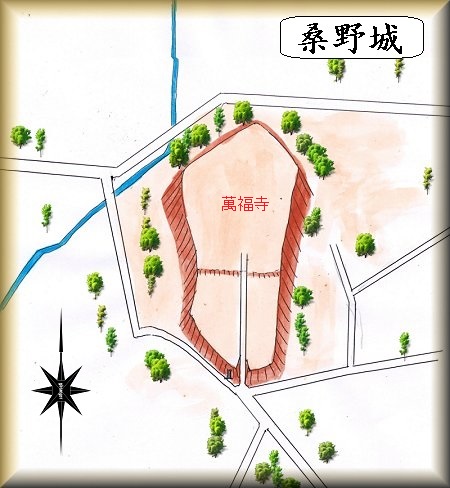 阿南市桑野町にある萬福寺のある微高地が桑の城の跡であり、googlemapにも掲載されている。