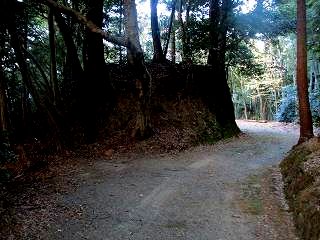 この土塁jの側面部を通って南側に進んで行ったところが2郭である。2郭の東側側面部を通って、車道が南麓に続いている。