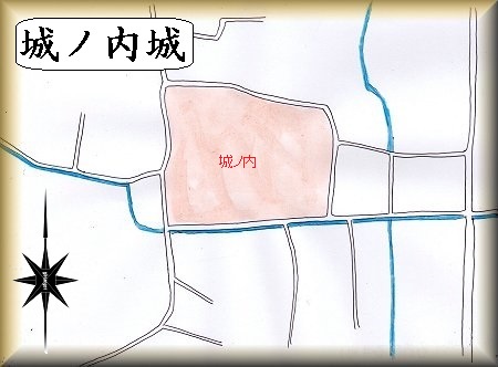 渡内川の南側の80m四方ほどの一角が「城ノ内」と呼ばれており、城ノ内城の跡であったという。