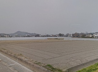 城址一帯は水田地帯となっており、明確な遺構は認められないが、周囲を通っている水路からおおよその全体形状は理解できる。