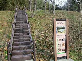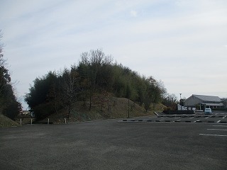 駐車場に車を停めると、レキシルの建設に伴って一部が削られたかと思われる土手が正面に見えている。これが犬伏城の主要部の城塁である。