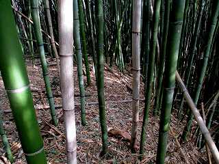 削られた斜面には木は生えていないが、その上は密集した竹ヤブとなっている。
