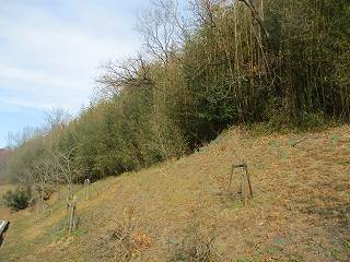 | 1郭内部。一面の竹ヤブである。 | 1郭城塁。 |