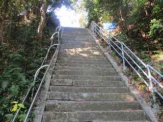 | 愛宕神社。 | 東側の階段。急峻な地形であることが分かる。 |