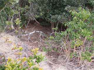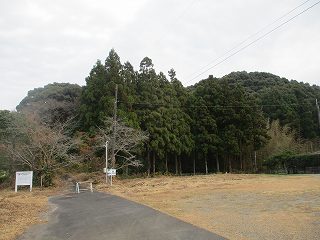 | 北側の津波避難所にある城址碑と案内板。 | その上にはこのような切岸地形が2段見られるのだが、後世の改変の可能性が高い。 |