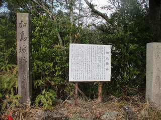 登ったところが広場になっており、そこに加島城の城址碑と案内板とが設置されている。ちなみにgooglemapは、この城址碑の位置に加島城址の印を付けている。