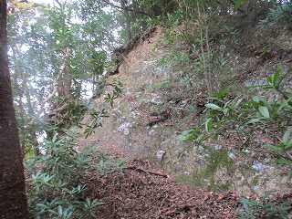 この部分は人工的な平場なのであるが、後世に開削された部分であるという。ただし、これだけの平場が形成されているということは、旧状でもある程度の広さの平場が形成されていた可能性が高いのではないだろうか。