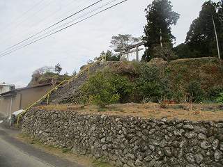 登ってみると台地上は神社が祭られているだけで、それほど広いスペースはなかった。これではたいした人数を籠めることもできず、簡素な砦といったレベルの城でしかなかったであろう。