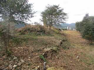 | 1郭から居館方向を遠望したところ。 | 1郭北側の堀切。 |