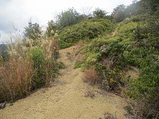 ところがこの尾根の東側は断崖絶壁となっていて、かなり危険である。所々オーバーハングになっていそうな箇所もあり、足を滑らせたら海まで一直線に墜落してしまいそうだ。気を付けた方がよい。