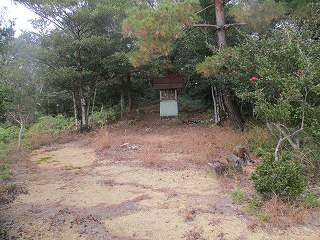1郭には小さな神社が祭られている。遊歩道はこの神社に向かうためのものだったようだ。神社の背後には土壇状のものがある。