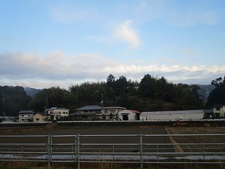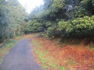 | 南側から遠望する櫛渕城。比高15mほどの独立丘である。 | 山頂に続く道。 |