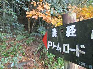 登り口に行ってみると、「義経ドリームロード」と書かれた案内が立てられ、遊歩道が付けられているのが見えてくる。