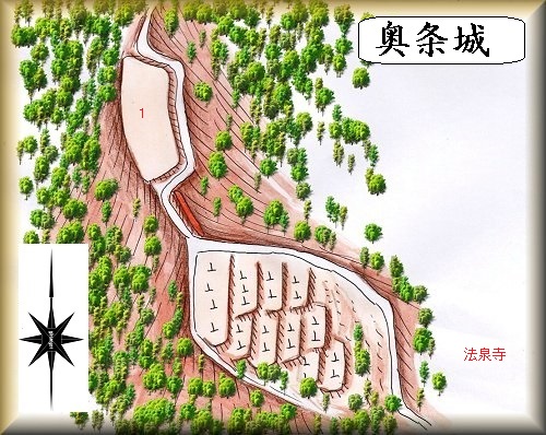 といったことと、奥条という地名から、この地にも城があったのではないかと推定されている。しかし、明確に城と言えるような遺構は確認できず、本当に城郭であるのかどうか疑問も残る場所である。