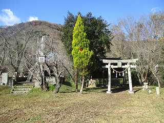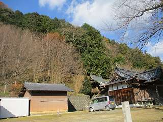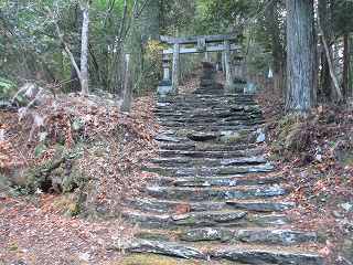 そのため、当たりを付けて進んで行くことを強いられた。集落内の道は狭く、この辺りから山道を走っていると、やっと鳥居の所に到達することができた。