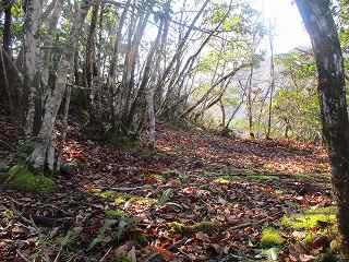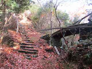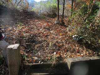 ここから民家の犬に吠えられながら進んで行く。山道は現在は通る人もほとんどいないらしく荒れかけてはいるが、普通に登って行くことが可能な道であった。