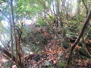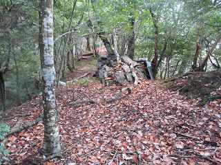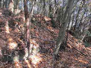 この先に4郭があり、その前面には低いながらも石積みが見られた。ただし、これもたいした高さはないので、防御性には欠けている。