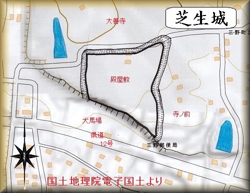 芝生城は三好氏発祥の城と言われており、遺構がないのに立派な案内板が建てられているのはそれゆえであろう。