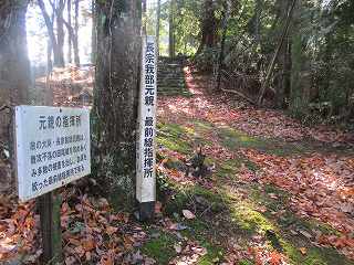 この峠の部分の南側には長宗我部元親最前線指揮所の案内が立てられている。長宗我部元親がこのような場所まで指揮しに来たのかと思うと感慨深いが、ここは本当に最前線に当たる場所であり、果たして大将自らここに陣取るということがあっただろうか。
