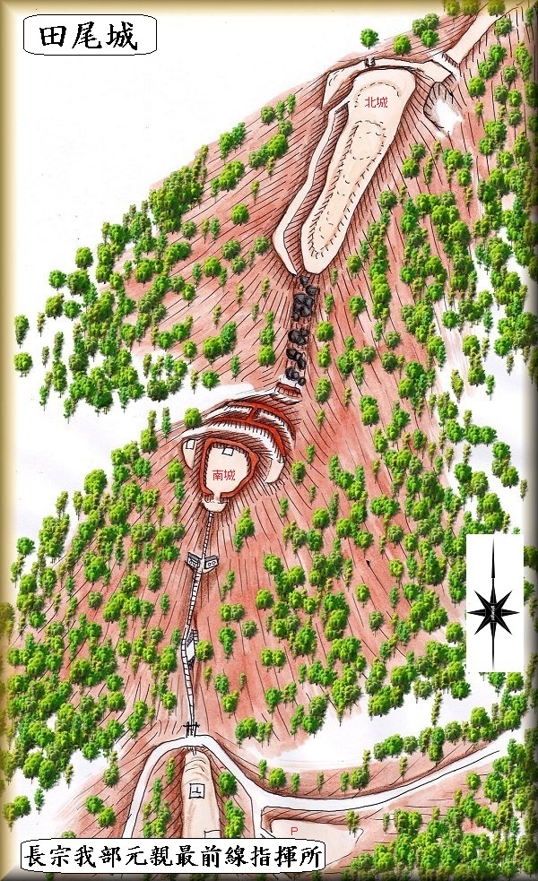 南城を見た段階では、多人数が籠城できる城とは思われなかったのだが、北城まで見ると、かなりの人数が籠城することが可能な城であることが分かる。当地の山城の中でも最大級のものであり、長宗我部勢に備えて築いた城という伝承と遺構はマッチしているといってよい。