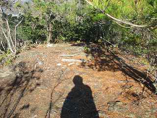 その先は岩場である。頑張って岩場を登ってみると、そこが最頂部であり、ちょっとした平場が形成されている。これが1郭であるらしい。北側以外の三方向が岩場となっている場所である。