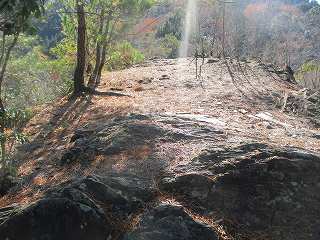 入口には鳥居が建てられているが、城内には神社はない。途中の大岩の下に小さな祠が祭られていたのだが、鳥居はそれにまつわるものなのであろうか。
