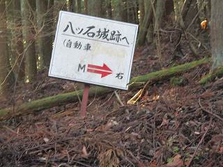それでもこの位置までやってくると、八石城の案内表示が出てくる(下の写真1枚目)のだが、ここまで来るのが大変だ。とにかく一番上のお宅を目指していくようにするのがポイントである。