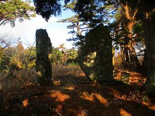 | 標柱と案内板。 | 尾根上にある墓。 |