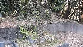 その先に高さ2mほどの城塁が見えている。そこが3郭である。3郭の入口はやや枡形状に窪んでいるが、かつての虎口構造の名残であろうか。3郭は幅も広くなり、今度は東南側に向かって延びている。3郭城塁縁には土塁状の部分も見られたが、本来の遺構なのか、墓地造成の際に削り残されたものなのか、判別しがたい。