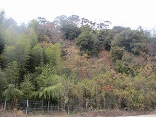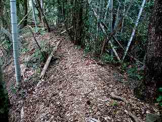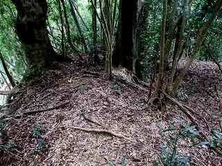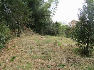 | 牟岐古城の案内板。この背後から細い山道を登って行く。 | 2郭の南側下の腰曲輪。 |